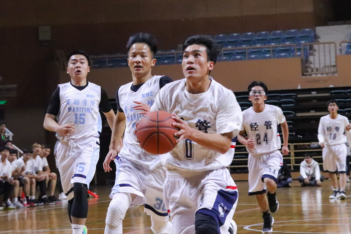 首先进行的是季军争夺战,比赛一打响,一发三分便精准命中,海科率先拉开三分,而文理不甘示弱,奋起直追,最终上半场海科科学与工程学院以20:11暂时领先文理学院,下半场开始,文理学院不放过任何希望,缓缓追赶,在投进一颗罚球后,文理学院以40:40打入加时赛,比赛愈加白热化。最终海洋科学与工程学院以49:46夺得季军。紧接着便是冠军争夺战,双方皆是斗志旺盛,上半场经济管理学院以19:18的比分先胜一筹,下半场号角吹响,在全场观众的呼声中,商船反超,双方步步紧逼,火力全开,最终商船学院以56:37斩获冠军。