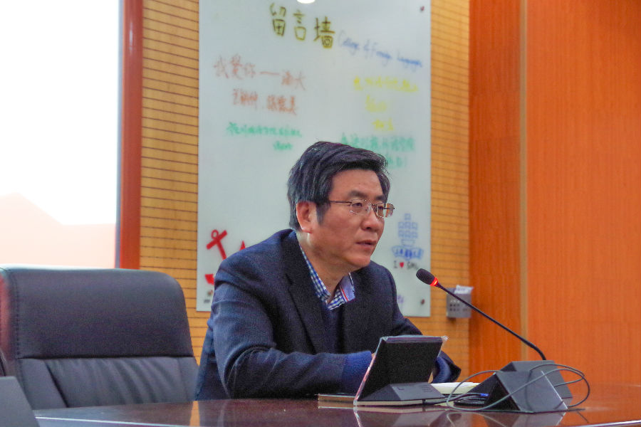 1216日,外国语学院党建研究会成立仪式于外语楼326会议室举行,党委书记朱耀斌出席并讲话,党委副书记钱敏芳主持,学院教工党支部书记、学工办老师、学生党员骨干等参加了活动。