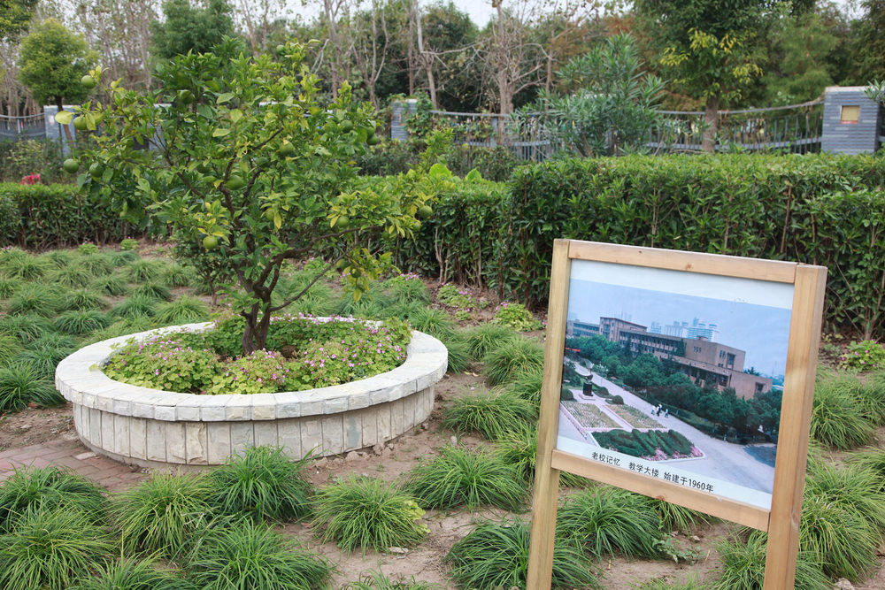 为纪念民生路校区,保留“老校记忆”,花圃工作人员特在基地内打造了民生路校区香樟大道缩影地。搬运来民生路校区的原始石凳,门口按比例放置民生路校门,修葺标志性的“SMU”花坛。用特别的方式为全校师生纪念老校、缅怀老校建立一个渠道,开辟一个空间。