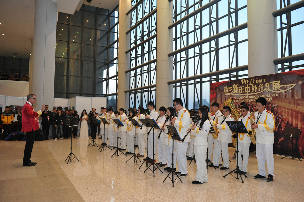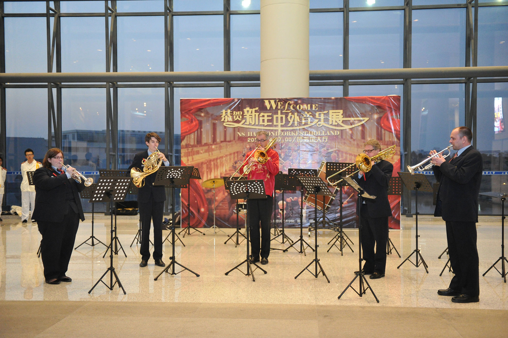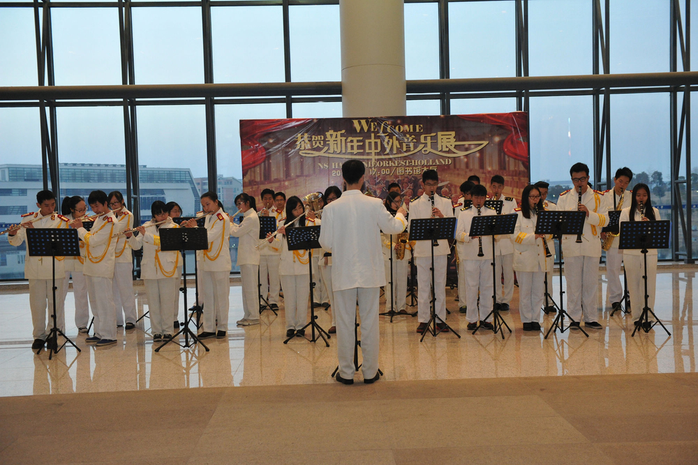 1月4日,由上海海事大学徐悲鸿艺术学院、图书馆、团委共同主办的“恭贺新年中外音乐展”在图书馆大厅精彩上演。来自荷兰皇家NS交响乐团70多位音乐家亮相图书馆,与校管乐团的同学们进行了一场音乐上的交流,为海大师生带来了一场音乐上的视听盛宴。