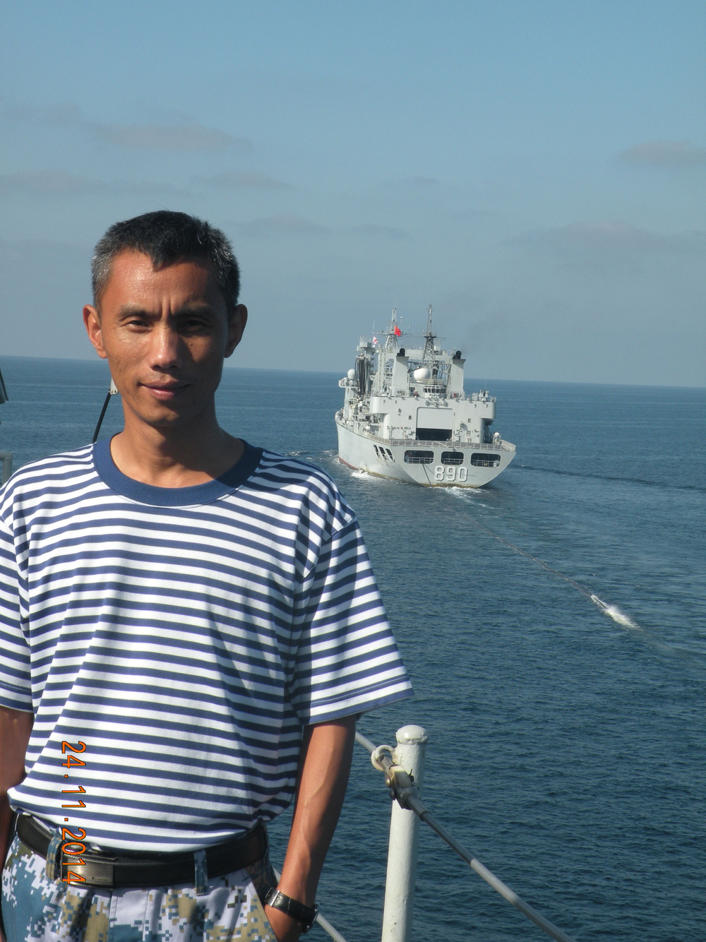 作为编队中唯一一名非军人身份的护航人员,大家都亲切地叫他“涂船长”,但涂老师却时时以一名“军人”的标准严格要求自己。涂船长说:“我很珍惜这次难得的机会,此次护航其实是让我服了8个月兵役,从海军官兵身上学到了许多宝贵品质,中国军人‘特别能吃苦、特别能战斗、特别能奉献’的精神让我受益匪浅。”在舰上的日常生活中,涂船长积极融入编队,参与舰上开展的各项演练活动,严格自律,获得舰员们一致赞扬。
