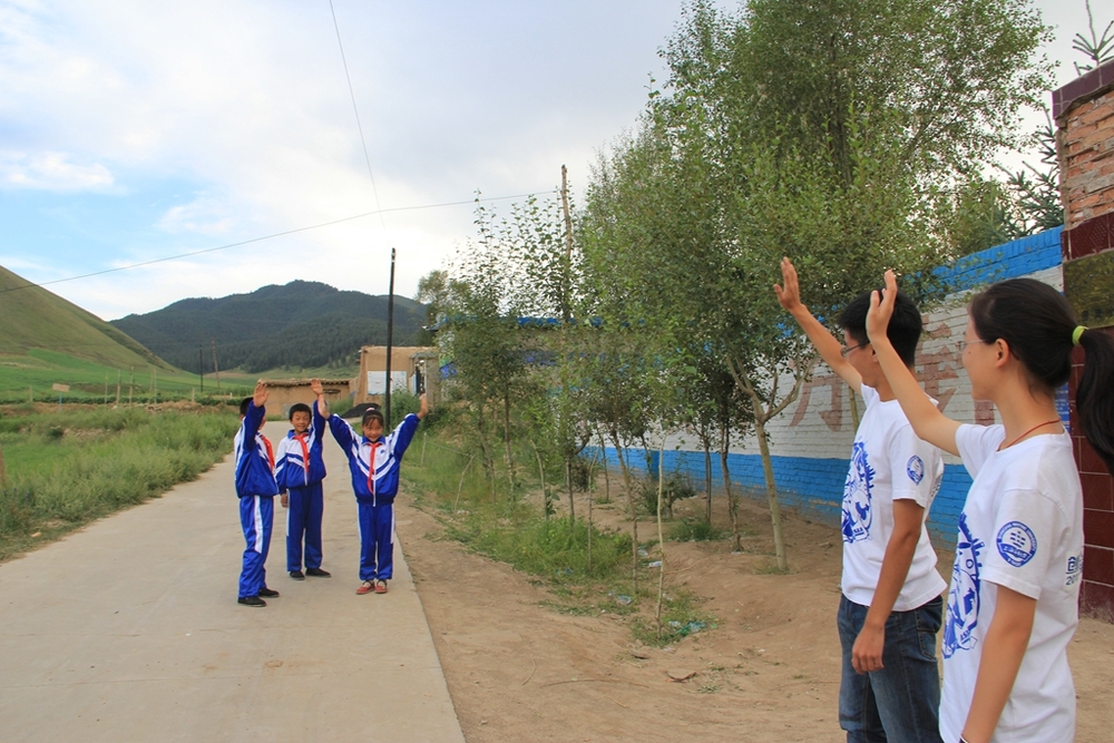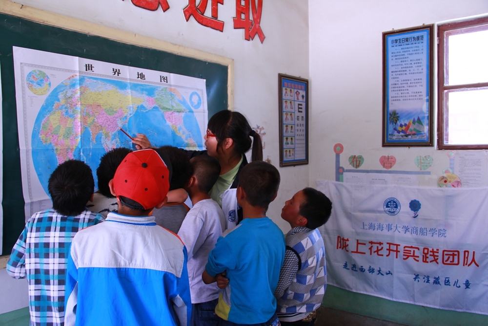 7月20日,”陇上花开”17名队员从上海出发,前往2400公里外的甘肃省武威市天祝藏族自治县东大滩乡圈湾村和酸茨沟村两个教学点进行支教活动。结合上海海事大学特色及当前时事政策,授课课程设计中除基础课程外,更有“海洋知识”“海洋强国”“笔下的海洋世界”“擒敌格斗术”等特色课程。山区的孩子纯洁可爱,但大多腼腆怕生,为此,17名队员因材施教,在课堂上与孩子有更多互动,教导孩子鼓起勇气克服恐惧,并提供机会和平台让孩子们展示自己的魅力与风采。