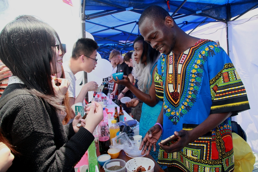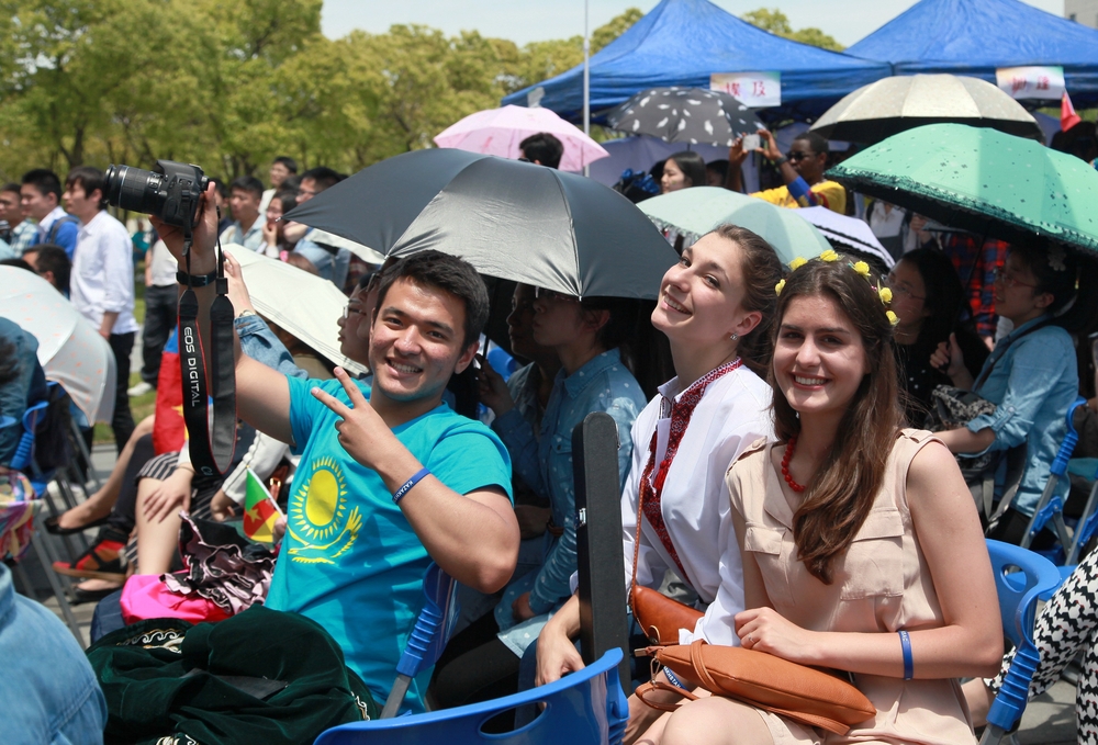 5月18日,上海海事大学第八届“国际文化交流节”在临港校区举行,来自40多个国家的数百名在校留学生纷纷搭建各国展台,展示他们的民俗风情和民族文化。上海市欧美同学会副秘书长、浦东欧美同学会常务副会长李伟民,我校校长黄有方等与留学生们一起共庆文化节。