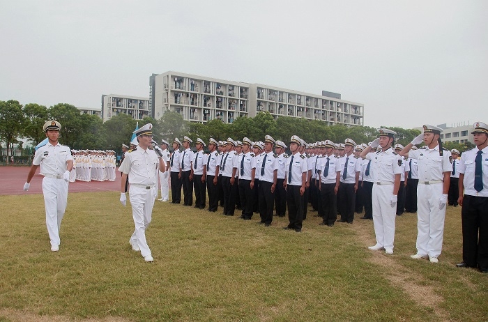 海军91394部队、海军365艇、海军154舰、海军155舰、海军804舰等近80名官兵,上海市教委体卫艺科处副处长赵婧茹,武警九支队政委吴方泽上校,浦东新区武装部副部长王振强上校,南汇新城镇武装部部长丁峰,我校校领导黄有方、杨万枫、门妍萍、王海威、施欣、严伟,各学院、职能部门负责人及2016级学生辅导员和全体新生等出席大会。