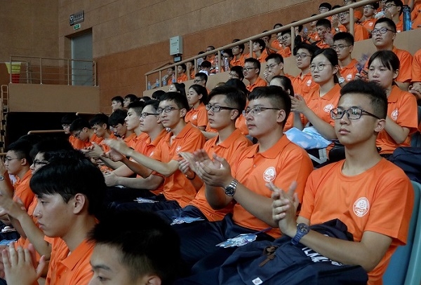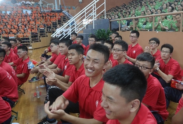 昨天和前天,我去看望、迎接同学们,我看到许多新生忙碌着,但是脸上都洋溢着喜悦之情。一位来自安徽的新生告诉我,上海海事大学在安徽的考分很高,他有许多大学可以选择,但是他坚定地选择了上海海事大学。你们知道,这是校长最喜欢听的话。我听了很高兴,我告诉他,你做了一个正确的选择!这是因为明年我们的分数还会更高。