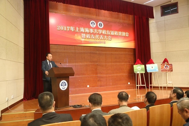 黄有方校长发表热情洋溢的讲话,代表全校师生员工,热烈欢迎校友们“回家”,并向长期关心、支持学校发展的各级领导、各位校友和各界人士表示感谢。他向校友们介绍了学校近年来取得的成就:在航运领域,学校和中国航海学会在北京共同发布了《南海航行状况研究报告》,引起了国内外的广泛关注;国际海事组织亚洲海事技术合作中心落户我校;在物流领域,学校做了大量卓有成效的工作,主持了包括雄安新区在内的许多重要城市的物流战略规划项目。此外,学校在教学、科研、研究生教育、师资队伍建设、学生工作、后勤保障、校友工作、现代大学制度建设等方面取得了令人瞩目的成就。黄有方表示,学校的发展及其辉煌的未来与校友们密切相关,全校教工一定会携手奋进,不负广大校友的期望,在上海国际航运中心建设、“一带一路”建设,自由贸易试验区建设、上海科创中心建设中发挥更大的作用,努力把学校建成具有全球影响力的高水平海事大学。