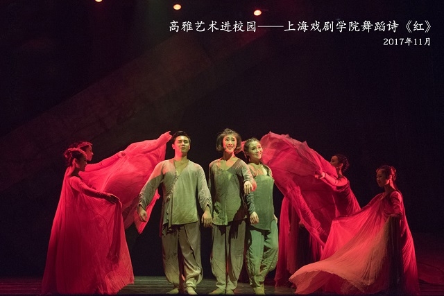 一系列演出让师生们在与艺术的零距离接触中欣赏到形式多样、内容丰富的精彩表演,满足不同文化艺术品位的师生需求。中央芭蕾舞团是中国唯一的国家级芭蕾舞团,成立于1959年,代表了我国芭蕾舞艺术水平,是最负盛名、历史最为悠久的芭蕾舞团;中国武警军乐团是活跃在国内外、特别是首都舞台的一支专业管乐艺术团体,演出现场掌声不断,整场音乐会给师生们带来了一场视听盛宴;越剧《双珠凤》以反封建为主题思想,全剧分为八场,由著名越剧作曲家贺孝忠作曲;现代舞蹈诗《红》通过“力”与“美”的表现手法及“红色”与“黑色”的对峙和搏击,体现了共产党人的精神追求;小剧场淮剧《孔乙己》结合现代社会热点,颇具幽默感与时代感;即将上演的沪剧《回望》以现代视角回望历史,别具匠心。