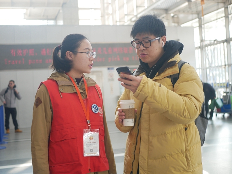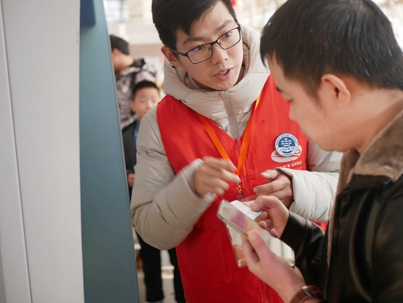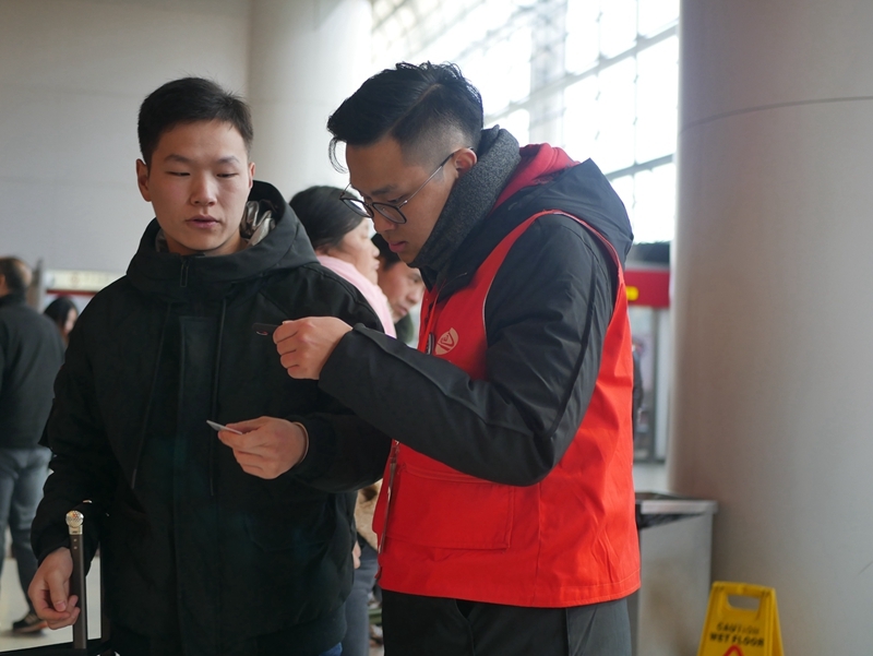 海大“小甜橙”们主要分布在售票大厅“心尚”雷锋服务站和自助取票大厅,足迹遍布上海火车站南北两广场。他们秉承“主动、热情、专业、周到”的服务理念,帮助旅客快速完成查询、购票、登车等流程,顺利坐上回家的列车。