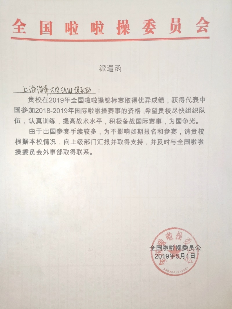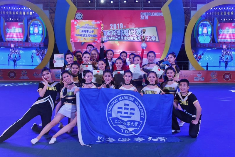 4月25至5月2日,2019年全国啦啦操锦标赛在天津市河东区东局子体育馆开赛,本次大赛由中国大学生体育协会、国家体育总局及天津市体育局主办,来自全国20余个省、自治区和直辖市共312支代表队、7000余名啦啦操运动员汇聚天津,共同展示团结、青春、阳光、时尚的啦啦操运动的魅力。上海海事大学健美操队在此次大赛中不畏强手、信心满满,与来自全国各地的68所高校进行比拼,其中更是不乏体育运动训练专业队伍和师范体育院校队伍,最终披荆斩棘荣获“大学组大集体自选街舞冠军”、“大学组大集体自选花球冠军”的优异成绩,并被全国啦啦操委员会授予代表中国参加“2019年国际啦啦操系列赛事”的资格。另外,我校还在此次大赛中荣获“最佳人气奖”,其中文理学院的郑茜老师荣获“优秀教练员”称号,法学院居薷薷、物流工程学院戈凯悦、外国语学院金明爱、经济管理学院徐千惠及虞依雯等5名学生被评为 “优秀运动员”。