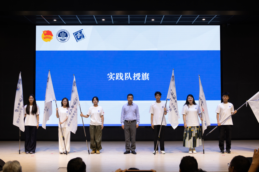 李志鹏为社会实践队代表授旗,并对即将出征的实践队同学们提出三点希望:一是在实践中了解行业发展,增长见识、锤炼本领;二是在实践中展现作为,为地区发展建设贡献力量;三是强化成果转化,做好实践的“后半篇文章”。