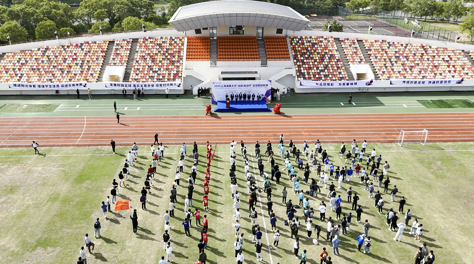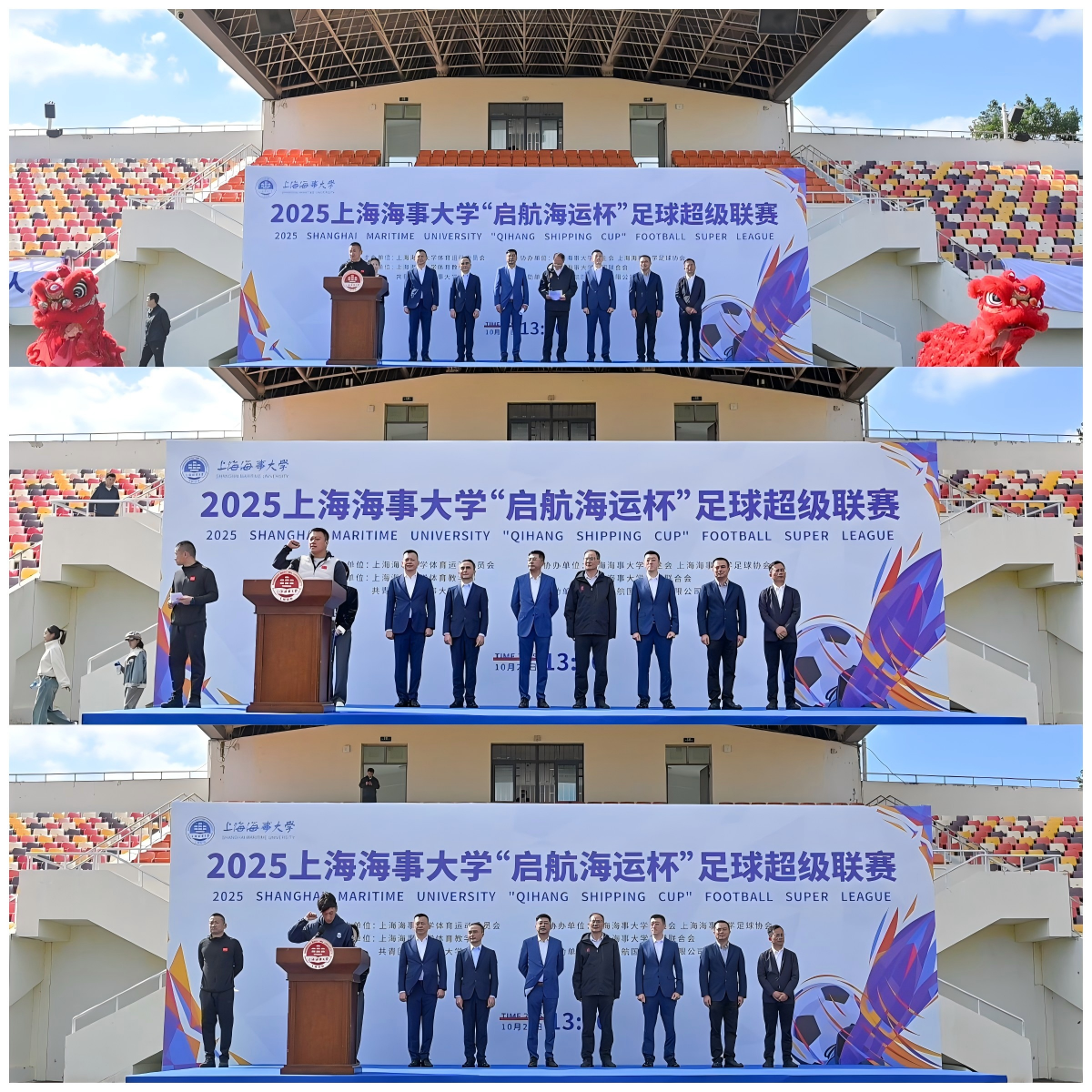 10月22日,2025上海海事大学“启航海运杯”足球超级联赛在北区足球场开幕。本届赛事由大连启航国际物流有限公司全程赞助支持。开幕式现场气氛热烈,校企领导、师生代表及全体运动员、裁判员齐聚一堂,共同见证了这一校园体育盛事的启动。
