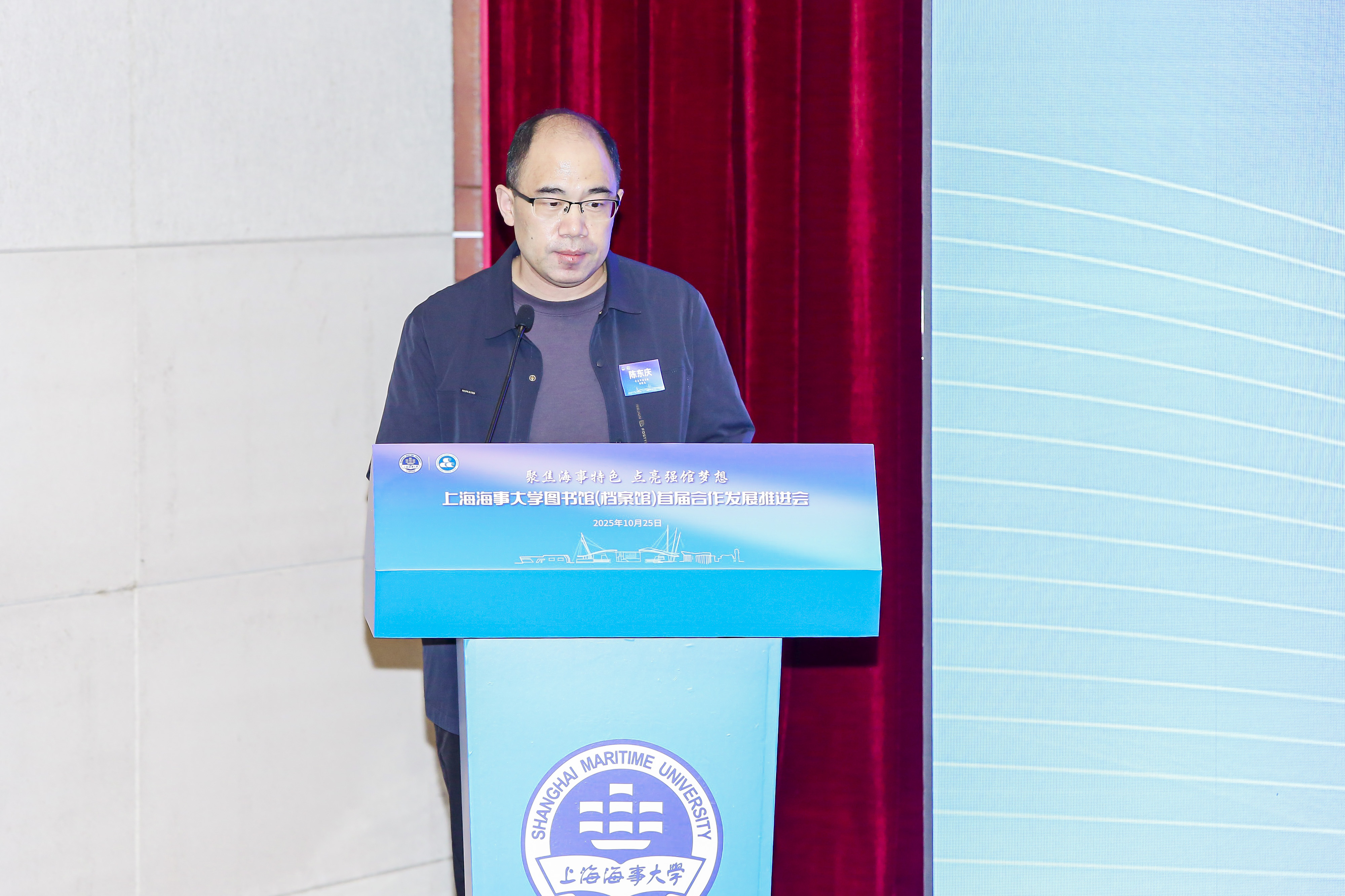 10月25日,上海海事大学图书馆(档案馆)首届合作发展推进会在中远报告厅举行。党委书记宋宝儒,副书记、副校长李志鹏,来自全国部分市级公共图书馆和高校图书馆、档案馆,博物馆界,港航物流界,社会友好单位及媒体代表等百余位嘉宾共同出席。会议由图书馆(档案馆)馆长胡志武主持。