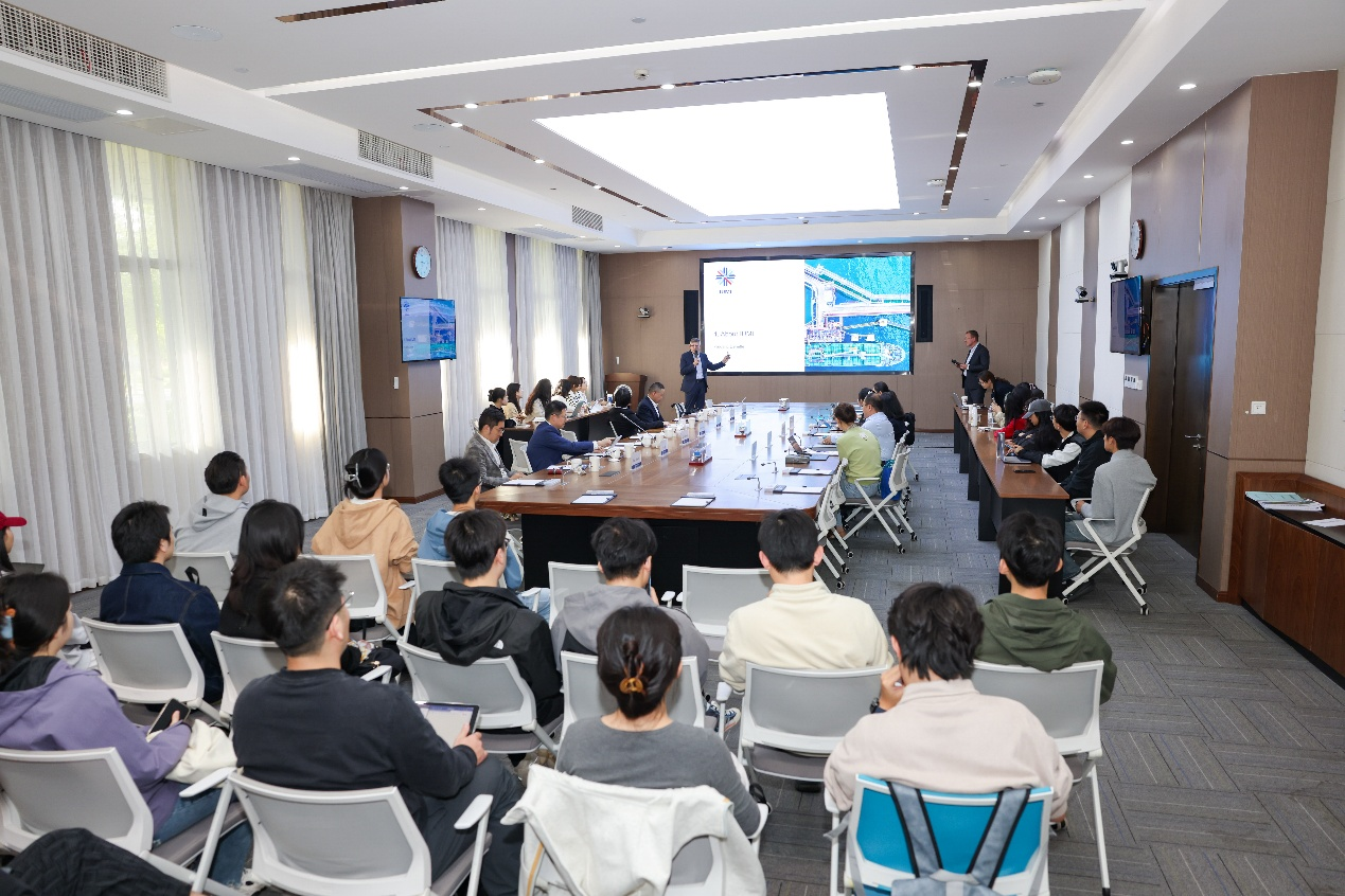 会后,弗雷德里克・德内弗勒做了演讲交流,向学校师生代表介绍了国际海上保险联盟的组织概况、职责范围、业务范围等。