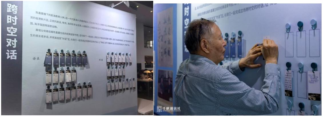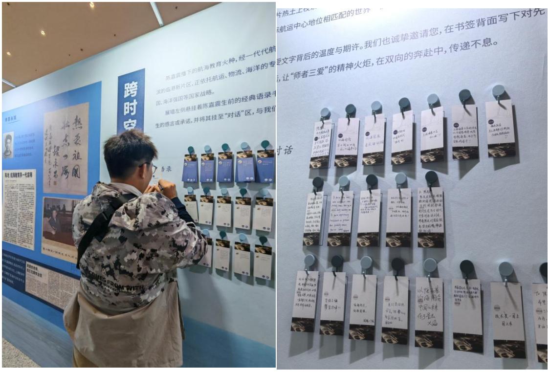 开展当日恰逢校友返校日,展览的“跨时空对话”互动环节吸引了各年代校友与在校师生的积极参与。展墙前,不少观众驻足良久,在陈嘉震语录书签上留下感言,完成了一场温暖而深刻的精神对话。