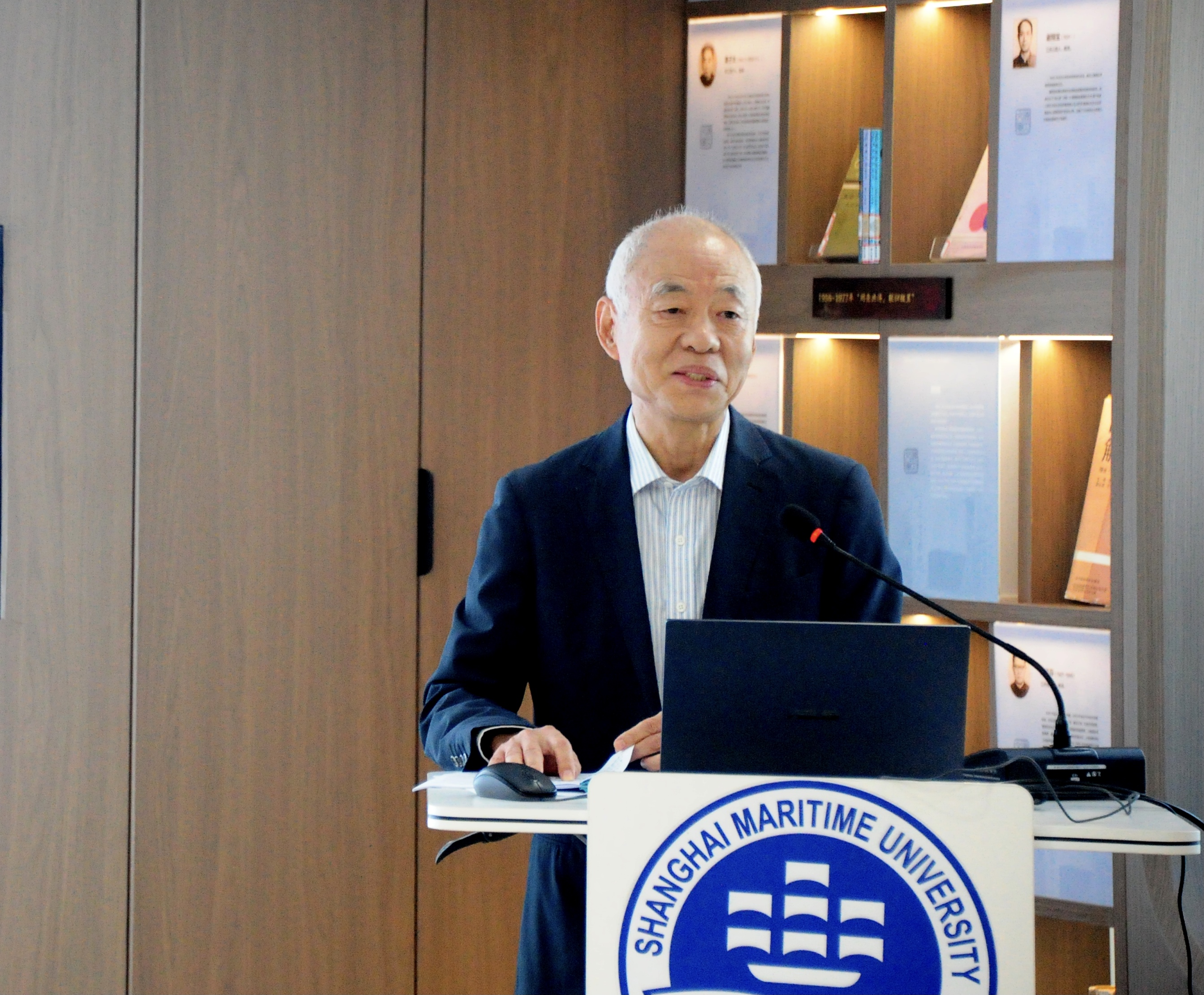 本次讲座前后,刘震环校友还分别参观了《航海教育家陈嘉震档案和图书展》和海大文库。