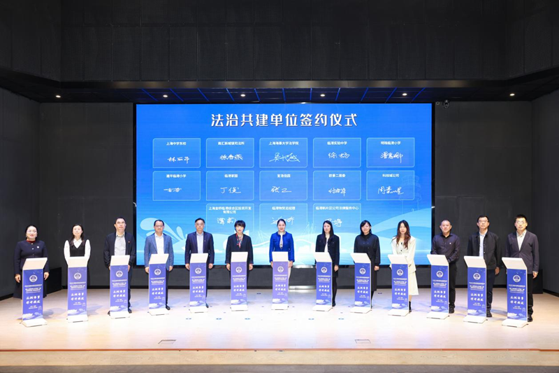 为构建“大中小法治教育一体化”与“校社企法治联动”新格局,上海海事大学法学院分别与南汇新城镇司法所、临港新片区多所中小学、社区及企业代表签署合作协议,通过校地联动、跨界协同凝聚“法治共同体”,为临港新片区法治建设新篇章筑牢根基。