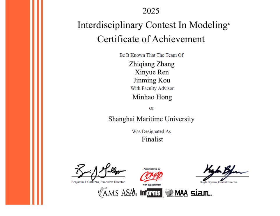 近日,2025年度美国大学生数学建模竞赛(MCM/ICM)与第十一届全国大学生统计建模大赛获奖名单相继公布。上海海事大学参赛队伍在两项赛事中双双刷新历史纪录,创下建校以来参赛最佳战绩,实现建模类赛事发展的重要“双突破”。