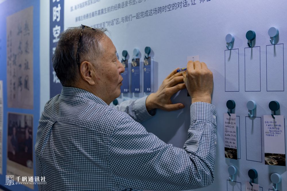 开展当日恰逢校友返校日,展览的“跨时空对话”互动环节吸引了各年代校友与在校师生的积极参与。展墙前,不少观众驻足良久,在陈嘉震语录书签上留下感言,完成了一场温暖而深刻的精神对话。