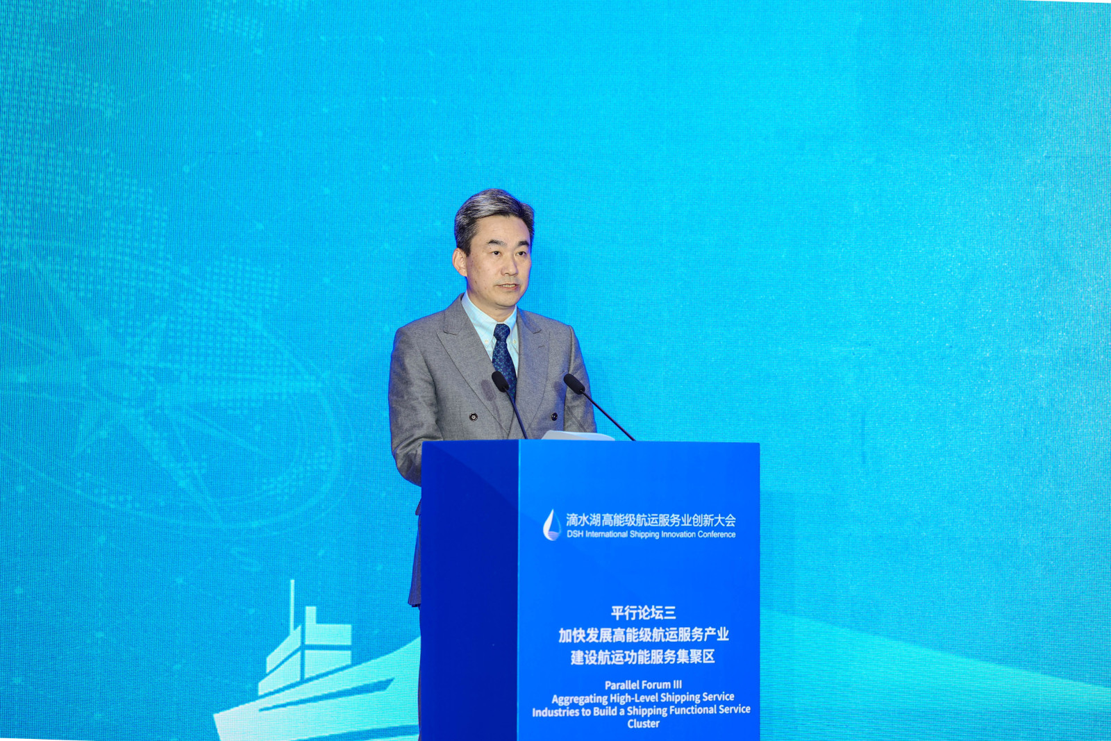 平行论坛三上,临港新片区党工委委员、管委会专职副主任赵义怀、上海海事大学校长初北平、中国港口协会代表徐国毅分别致辞。