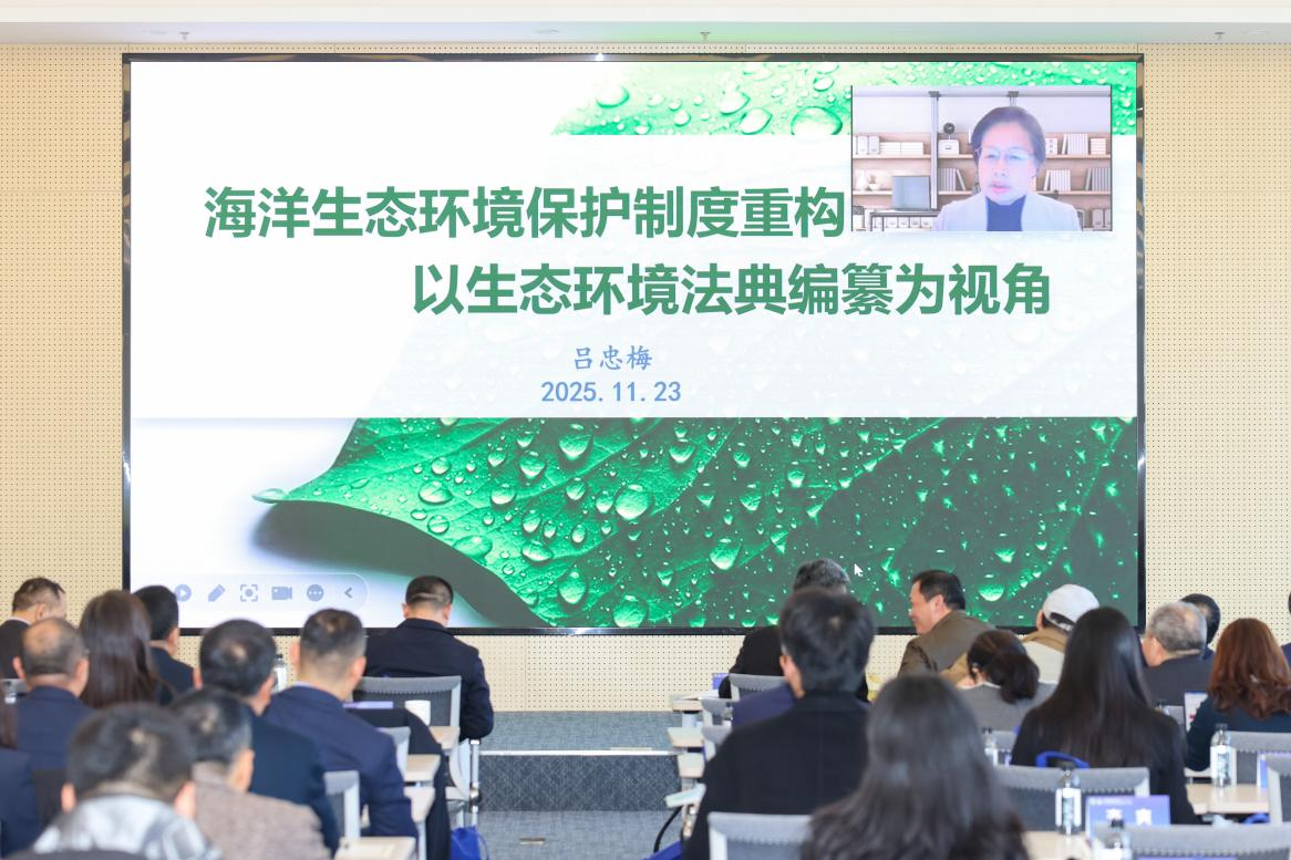 在主旨发言环节,吕忠梅会长以“海洋生态环境保护制度重构”为题,通过视频方式作主旨演讲,从生态环境法典编纂工作进展、对《海洋环境保护法》及相关法律的法典化编纂、法典编纂及其完成后的相关思考等方面,系统阐述了新时代海洋环境法治体系构建的总体思路和重点任务。