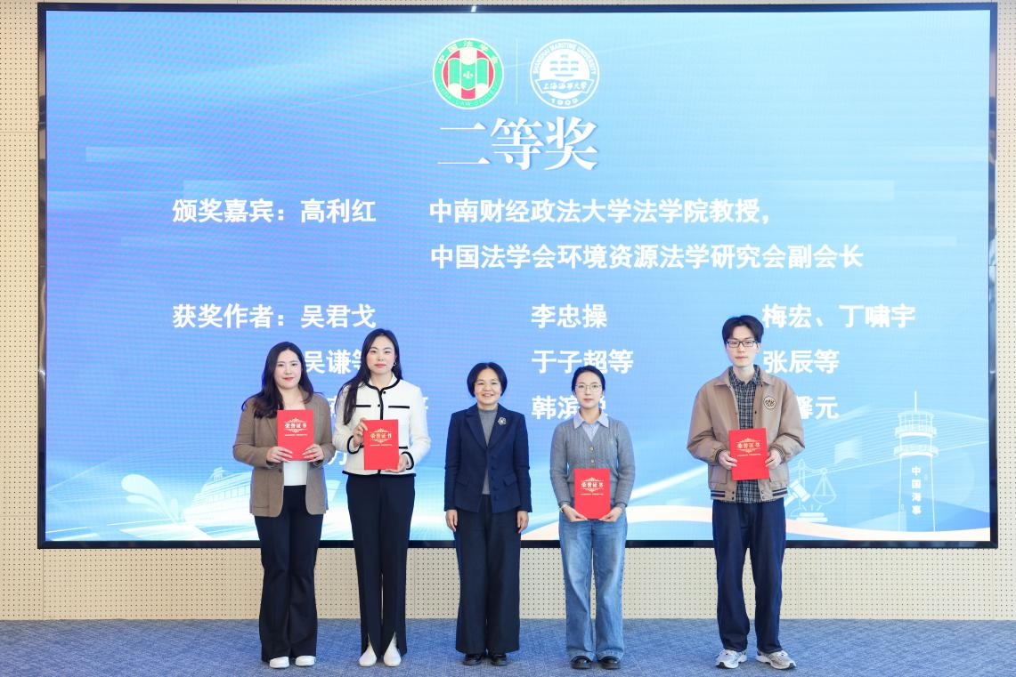 中南财经政法大学法学院教授,中国法学会环境资源法学研究会副会长高利红教授为二等奖论文作者颁奖