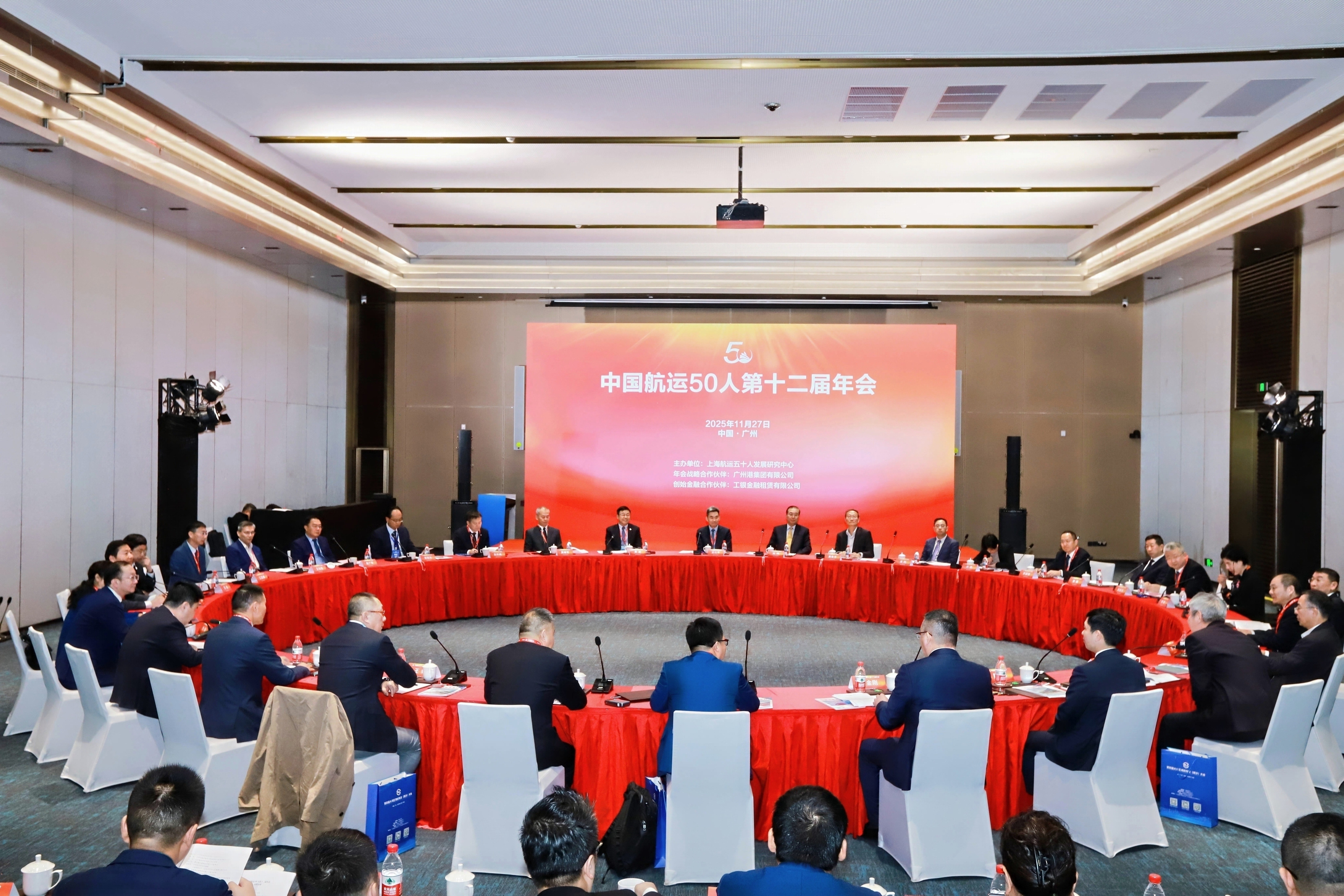 广州港集团董事长黄波、工银金租副总裁王振勇、广州南沙开发区管委会副主任袁飚分别致辞。航运五十人研究中心赵一飞教授就 “中国航运50人东疆会议”的专报撰写、提交反馈情况作简要通报。