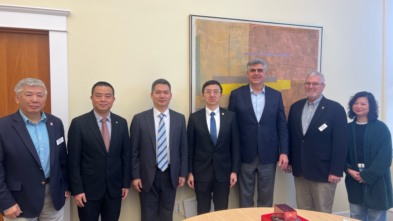 代表团一行还走访了美国福茂集团,拜会集团董事长、学校杰出校友赵锡成博士。赵锡成博士对代表团的到来表示欢迎。殷明代表学校对赵锡成博士及木兰基金会长期以来给予学校的支持,特别是近期航海模拟器的建设捐赠表示衷心感谢。殷明介绍了学校近年在人才培养、科学研究、社会服务、国际交流等方面的显著成就。赵锡成博士强调教育和人才的重要性,期待学校在国际航运人才培养中发挥出更为重要的作用。