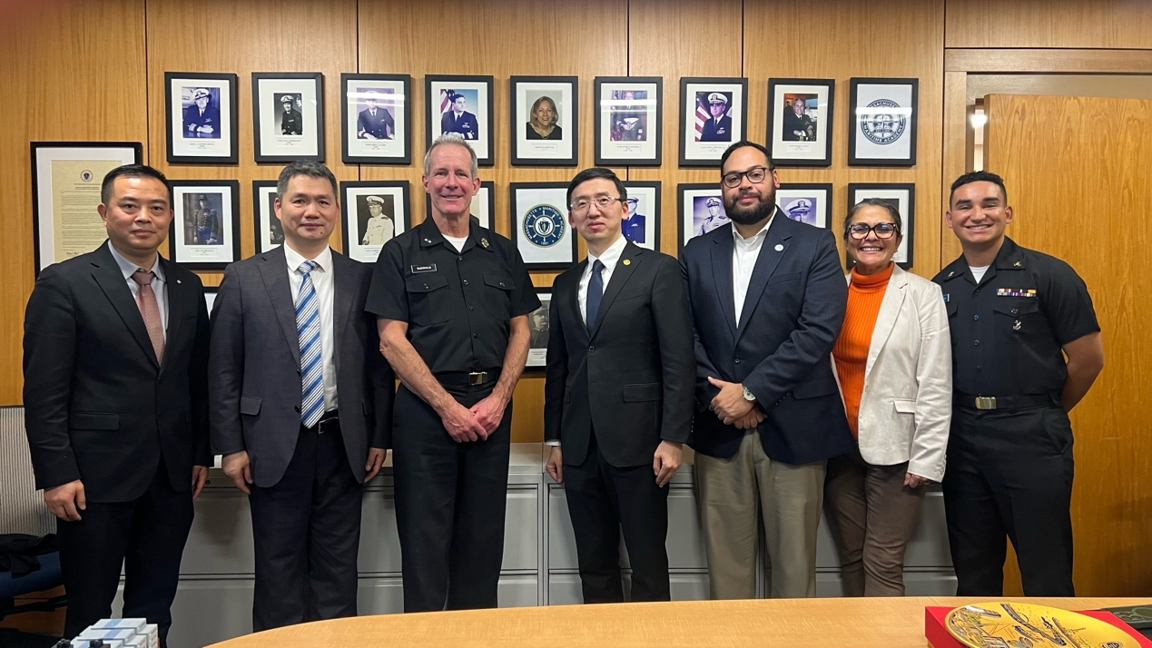 在美国麻省海运学院,代表团与校长弗朗西斯·麦克唐纳(Francis X.McDonald)等进行会谈,双方回顾了多年以来的合作历史,围绕联合航运人才培养、学科专业建设、教师交流、航运科技项目申报、学术资源共享等关键议题展开细致研讨。麦克唐纳校长指出,上海海事大学是一所全球知名的航运类高校。殷明表示,双方航运特色明显,且具有长期的合作历史,面对航运业数字和绿色低碳发展,双方未来应加大航运合作范围和力度。