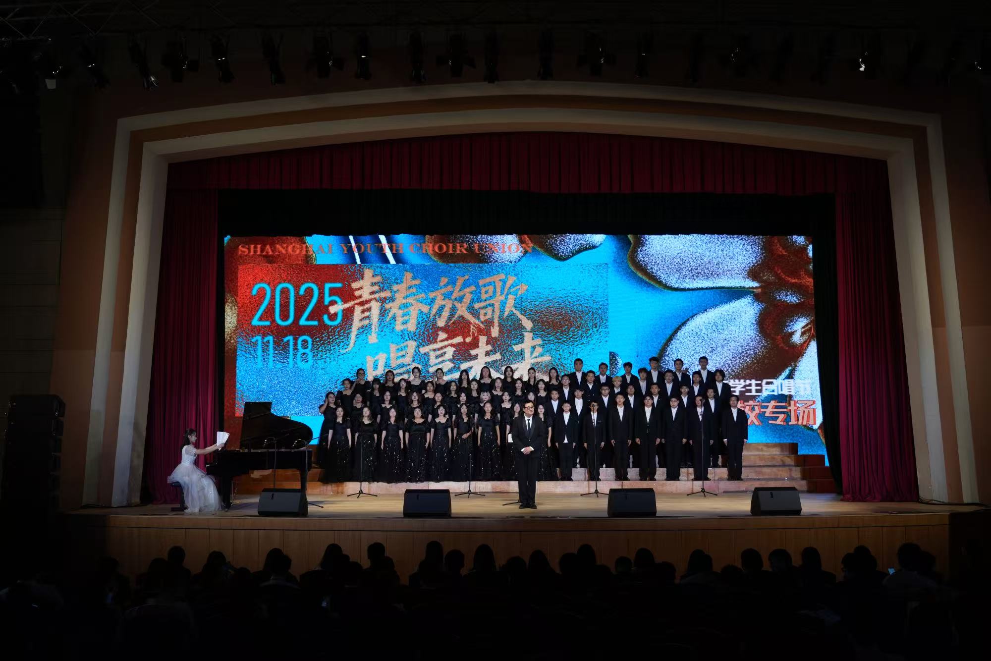 11月中旬,作为上海学生合唱联盟成员单位,合唱团受邀参演“青春放歌,唱享未来”2025上海学生合唱节高校专场音乐会,献唱《青玉案·凌波不过横塘路》,让古词焕发新的音乐生命力,充分展现出海事学子扎实的艺术功底与深厚的人文素养。11月下旬,合唱团受邀在“社会共治,守正创新,终结艾滋”2025年上海市“世界艾滋病日”主题宣传活动登台献唱,先后通过《飘动的红丝带》《如愿》两首作品的演唱,传递人文关怀,让公益精神在歌声中流淌。