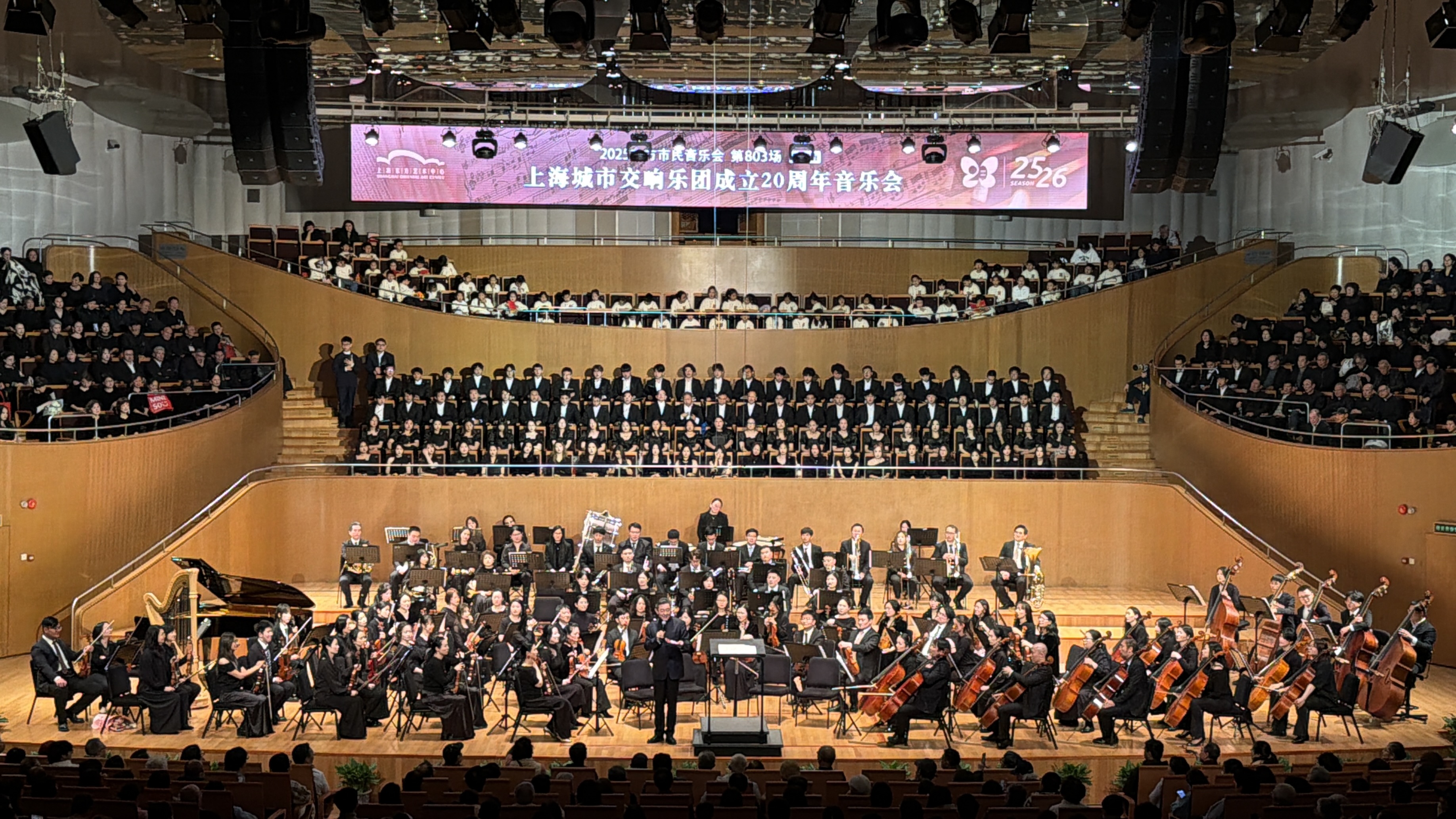 12月20日,上海东方艺术中心内歌声悠扬、掌声雷动,学校学生合唱团(以下简称合唱团)与上海城市交响乐团同台演绎贝多芬《第九交响曲》第四乐章“欢乐颂”,为上海城市交响乐团成立20周年音乐会画上圆满句号。这场高规格演出是合唱团近期接连亮相的3场市级重要音乐文化活动的收官之作,青年学子以精湛的艺术演绎传递青春力量,充分展现了学校美育工作的扎实成效。