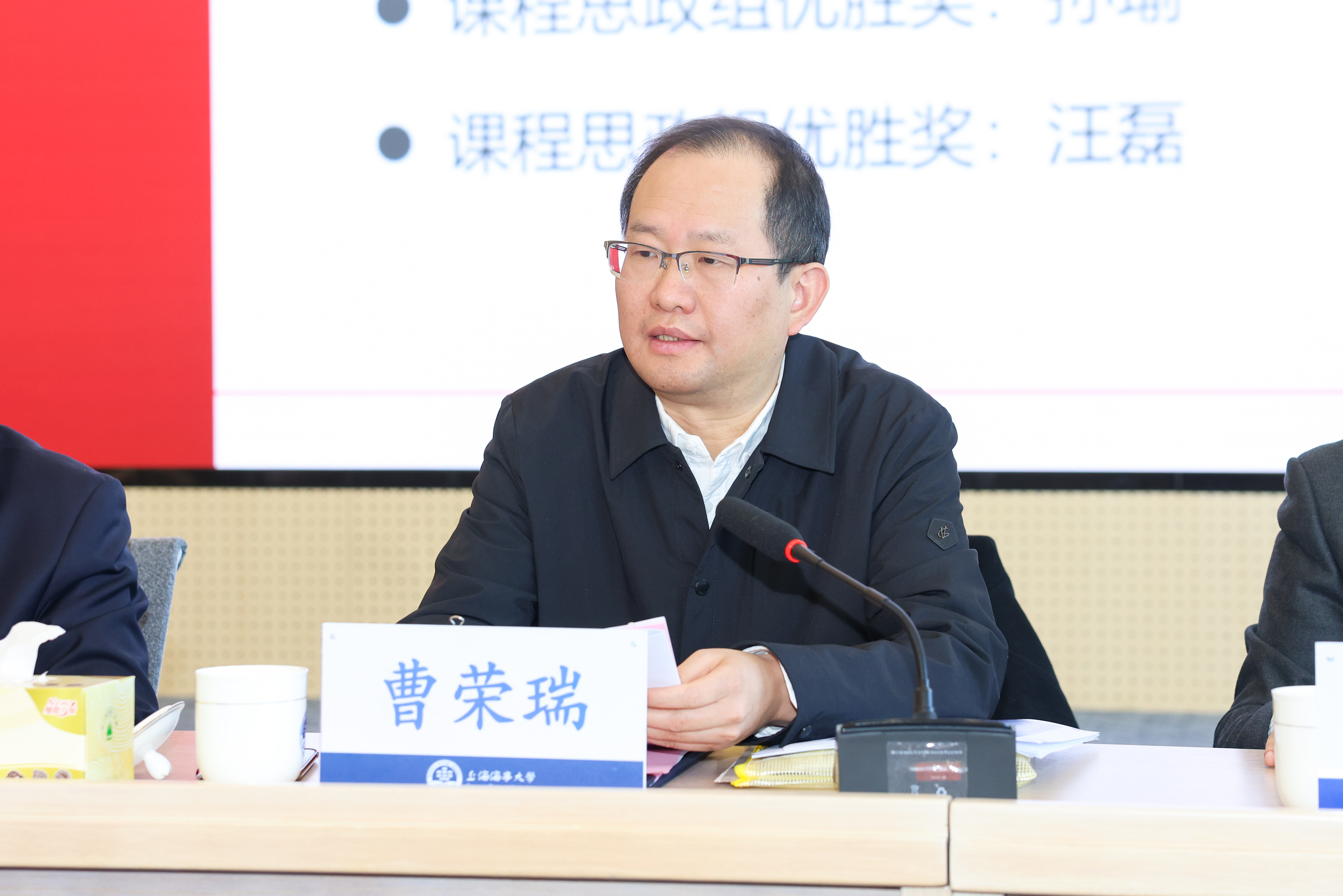 宋宝儒代表学校向获奖教师和教学团队表示祝贺,对坚守在教学一线、为人才培养事业辛勤付出的全体教职工表示感谢,同时就推动本科教育高质量发展提出了明确要求。他指出,我国高等教育正处于深刻变革的关键时期,教育、科技、人才“三位一体”成为国家战略,人工智能新技术正重塑教育形态,应准确把握这些发展趋势并结合实际工作加以落实。他强调,要深化课程思政建设,通过案例教学使价值引领真正入脑入心,筑牢立德树人的价值根基;要紧密对接国家和行业需求,精准锚定人才培养方向,推动专业结构优化调整;要深化高质量产教融合,整合优质行业资源融入课程体系、教学内容、实验实训和教材建设全过程;要推进教师学习交流,着力打造适配航运、物流、海洋领域行业需求的高素质专业化教师队伍;要积极推进AI智慧课程建设,赋能教育教学数字化转型。