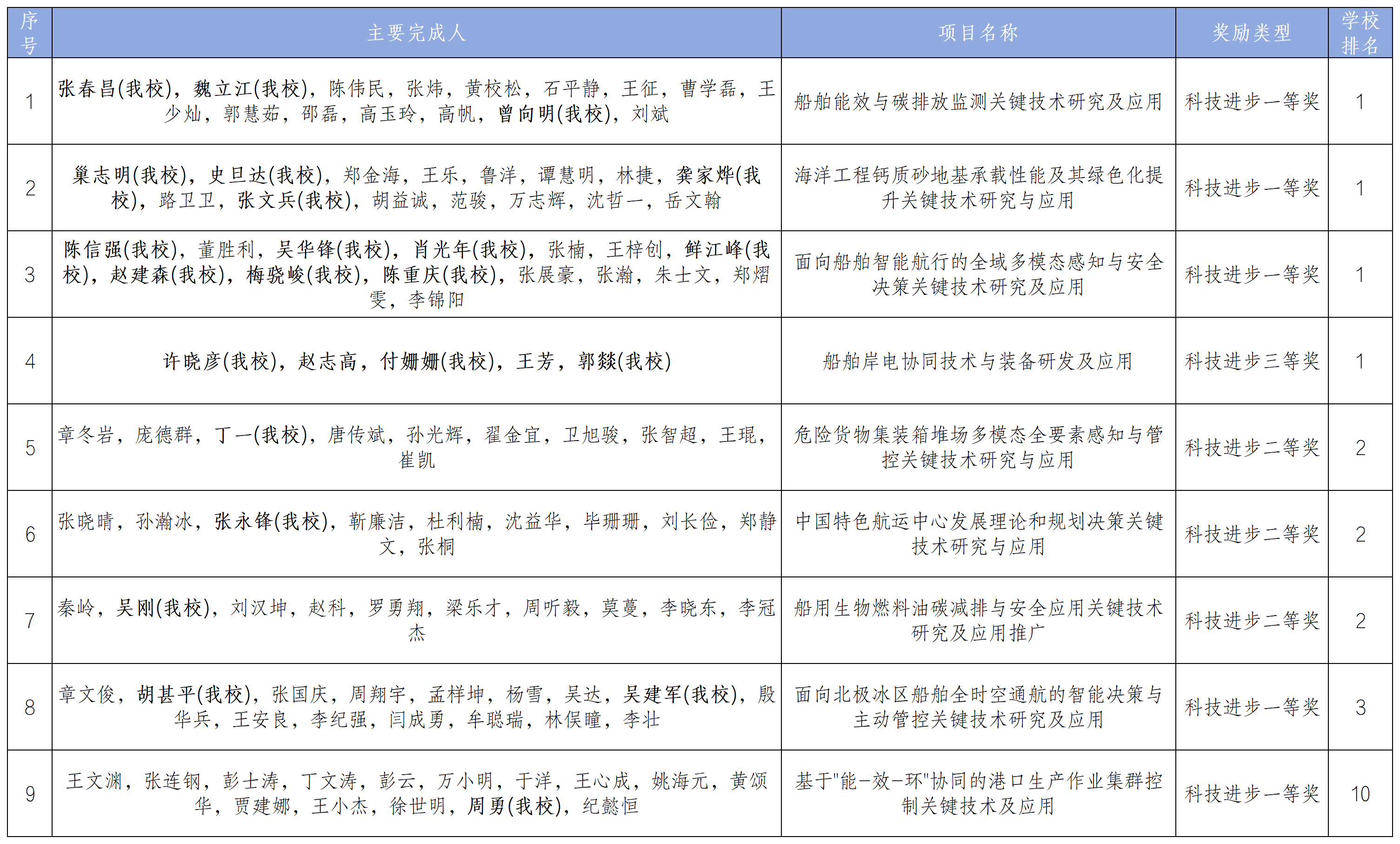 近日,2025年度中国航海学会科学技术奖获奖项目正式公布,上海海事大学9项科研成果获科技进步奖。学校作为牵头单位获一等奖3项、三等奖1项,作为参与单位获一等奖2项、二等奖3项(详见汇总表),获奖数量与获奖等级均创历史新高。