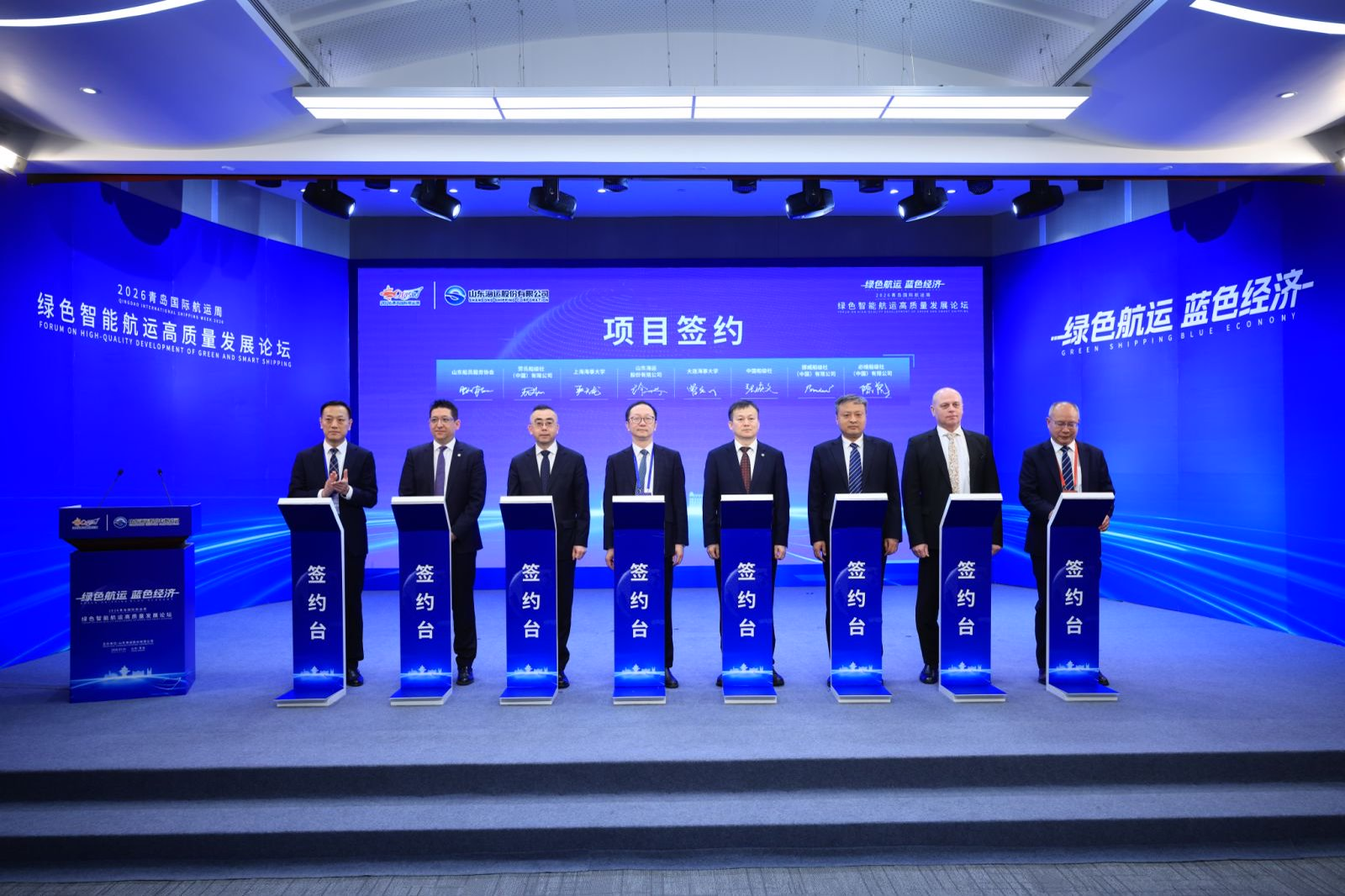 31日,初北平、严大龙应邀参加由山东海运股份有限公司主办的青岛绿色智能航运高质量发展论坛。论坛以“绿色航运,蓝色经济”为主题,汇聚了政府主管部门、国际组织、行业领军企业、金融机构、科研院所等各方代表。其间,严大龙代表学校与山东海运股份有限公司签署涉外海事法治人才协同育人共建协议,与山东海运股份有限公司、大连海事大学、中国船级社、劳氏船级社(中国)有限公司、挪威船级社(中国)有限公司、必维船级社(中国)有限公司、山东船员服务协会共同签署船员培养合作框架协议。
