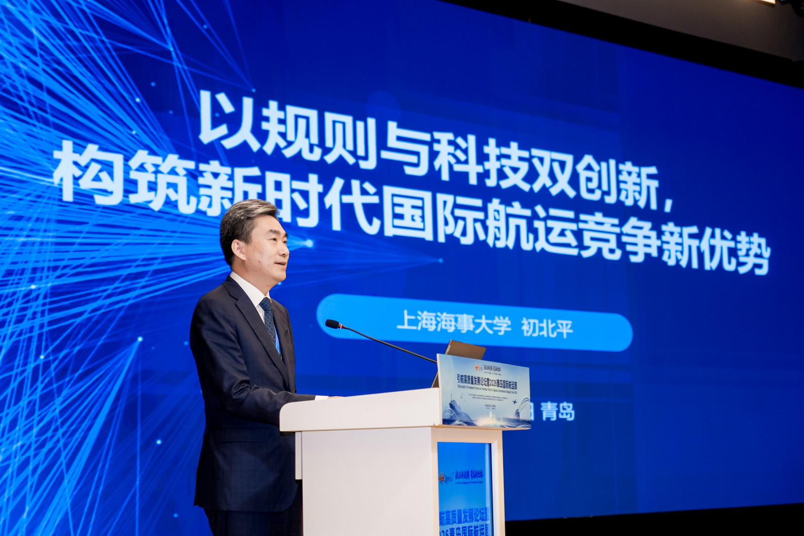 开幕式上,初北平应邀作题为“以规则与科技双创新,构筑新时代国际航运竞争新优势”的主旨演讲。他结合新《海商法》即将正式施行的重大背景,立足国家“十五五”综合交通发展导向和全球海事博弈格局,从法治机遇、交通战略、智能技术三个维度,深入剖析青岛国际航运中心建设的战略优势与发展路径。初北平表示,上海海事大学愿与青岛市进一步加深合作,以规则与科技双创新,助力青岛打造东北亚国际海事争议解决优选地、数智航运创新示范区和涉外海事人才培养基地。